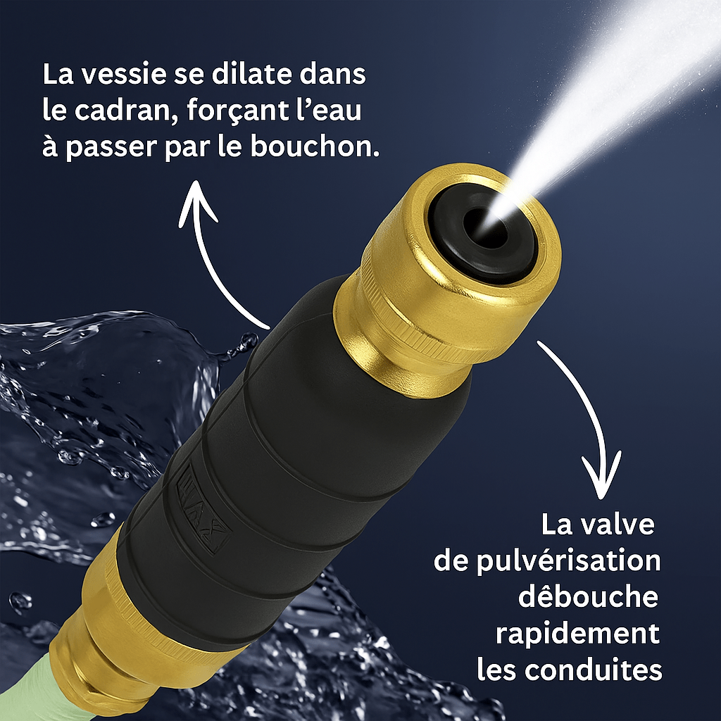 Grâce à sa pression ciblée, le déboucheur élimine les bouchons les plus tenaces en quelques secondes, sans produits chimiques.